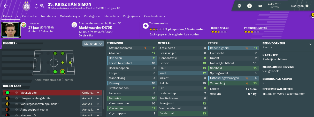 December was een lastige maand, niet zozeer qua tegenstanders, maar meer vanwege kleine onrust in de kleedkamer. Bepaalde spelers vonden zichzelf beter dan mijn jongens in de basis. Aangezien ik niet een winnend team ga aanpassen, wees ik de zeurende spelers op het feit dat zij terecht op de bank zaten. Een aantal kon hierin mee, een klein deel niet. We boekten nog wel een overwinnen op Puskás, maar daarna werkte het geklaag door op het veld. We kwamen niet verder dan twee gelijke spelen tegen een middenmotor en een degradatiekandidaat.